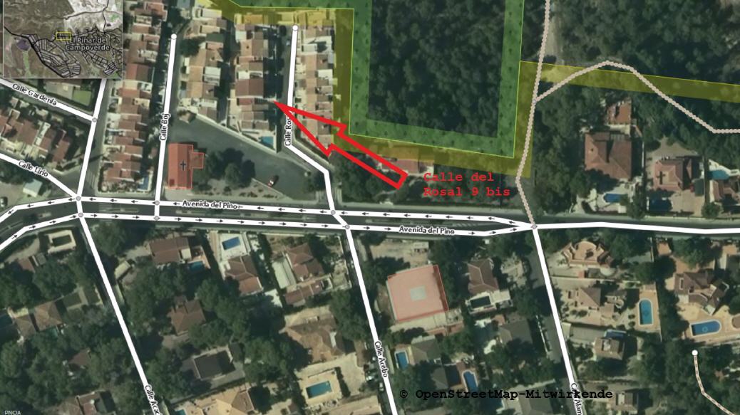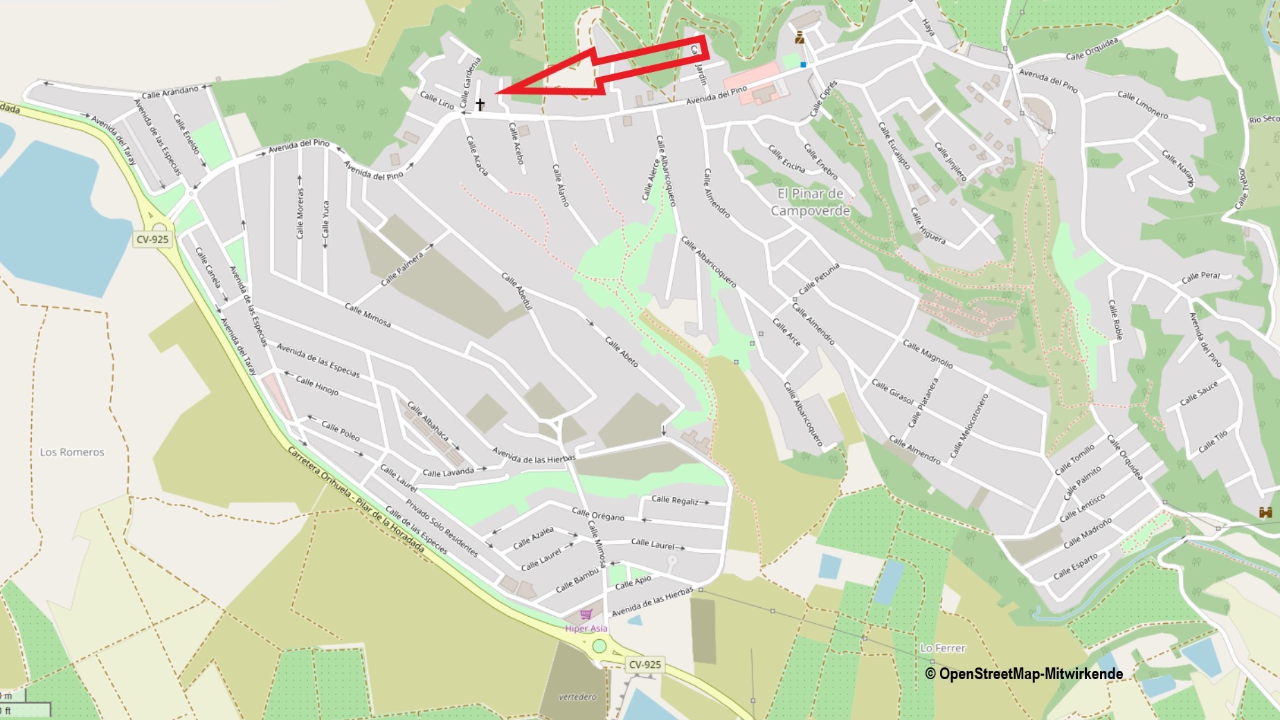 Das Ferienhaus liegt in Pinar de Campoverde, in einer Sackgasse, in Nähe der Kirche.